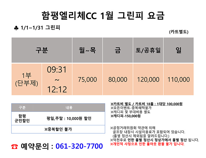 2026년 1월 그린피 요금